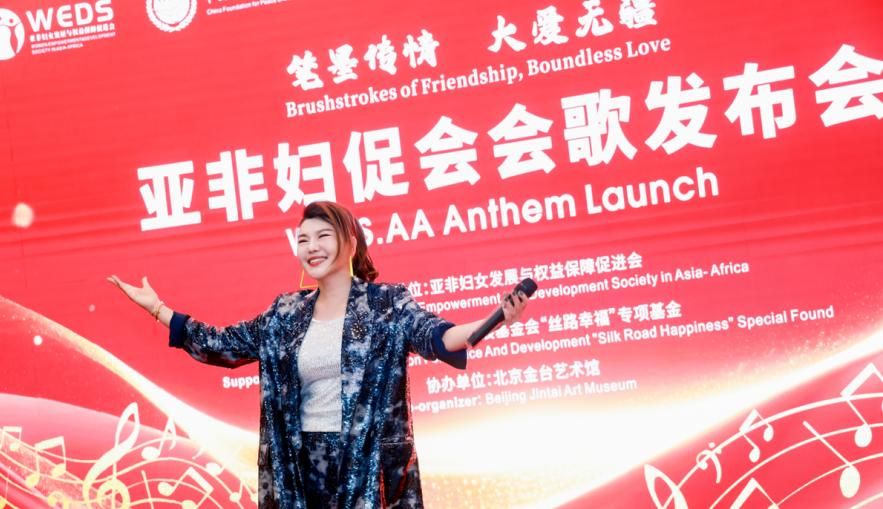 本次活动中,亚非妇促会正式发布会歌《爱在亚非》,以音乐传递大爱无疆理念,彰显亚非妇女团结奋斗的精神风貌。著名歌手乌兰图雅以深情饱满的嗓音演唱了中文版会歌,歌声诠释了亚非妇女的坚韧与大爱。