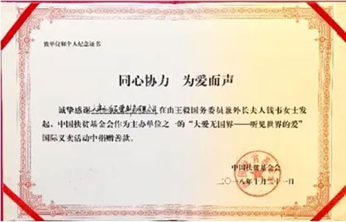 2018年,和治友德在第十届“大爱无国界”国际义卖活动中,为甘肃贫困地区听障儿童人工耳蜗项目捐款50000元,让听障儿童“听见世界的爱”。