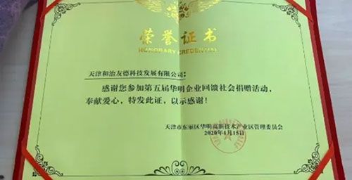 2020年1月,在“携手同行共奔小康”第五届华明企业回馈捐赠活动中,向困难学生爱心捐款10000元,以实际行动让孩子们感受到社会的爱与温暖。