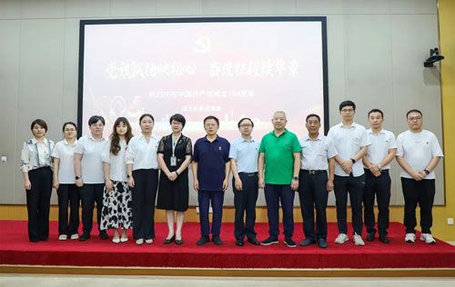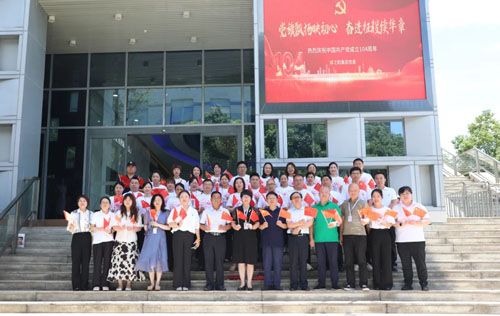 为庆祝中国共产党成立104周年,2025年7月1日,绿之韵集团党委举办“党旗飘扬映初心 奋进征程续华章”党日活动。浏阳经开区企业党委委员胡晓江,湖南省社会组织党建指导员、教授胡国龙,绿之韵集团常务副总裁胡均安、党委书记刘云、市场营销中心总经理戴三省、执行总经理梅其慧、审计监察部总经理刘涛、党委副书记许达仲、党委委员冯红、陈建新、杨丹以及浏阳经开区第一片区党员代表和部分在司党员共同参加活动。