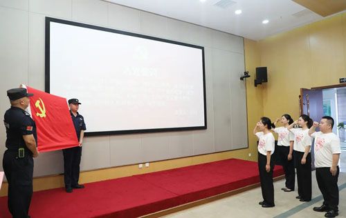 活动由绿之韵集团党委委员、业务服务中心业务总经理陈建新主持。在庄严的党旗下,预备党员宣誓仪式率先举行。支部书记们郑重地为预备党员佩戴上象征责任与使命的党徽,铿锵有力的誓言响彻会场,彰显了新生力量对党的忠诚信仰。