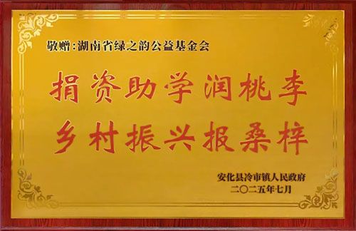 捐赠仪式现场暖意融融,绿之韵集团常务副总裁胡均安代表绿之韵公益基金会向胡家村村委递上25万元爱心支票;湖南有线安化网络有限公司董事长陈社平亦向村委捐赠20万元爱心款,两份沉甸甸的善意凝聚着对乡村发展的深切关怀。安化县人大常委会党组书记陈飞燕和安化县人大常委会办公室主任刘建辉代表受助方回赠爱心牌匾,以作铭记与致谢。“捐资助学润桃李,乡村振兴报桑梓”这句饱含温度的话语,正是胡家村全体村民对绿之韵等爱心力量善举的最诚挚回响。