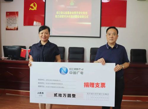 湖南有线安化网络有限公司向胡家村村委捐赠20万爱心支票