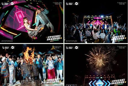 电音节后,篝火晚会率先点燃大家的热情,众人在欢快的音乐与熊熊的篝火旁尽情释放活力。随后,绚烂烟花璀璨绽放,点亮草原夜空,将现场氛围推向新高潮!