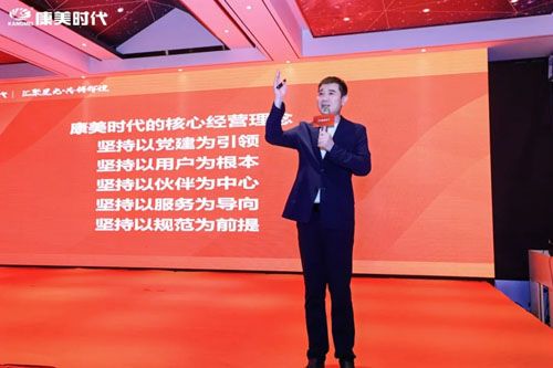 谈及事业发展,朱总指出,康美时代的核心经营理念是:坚持以党建为引领,坚持以用户为根本,坚持以伙伴为中心,坚持以服务为导向,坚持以规范为前提。