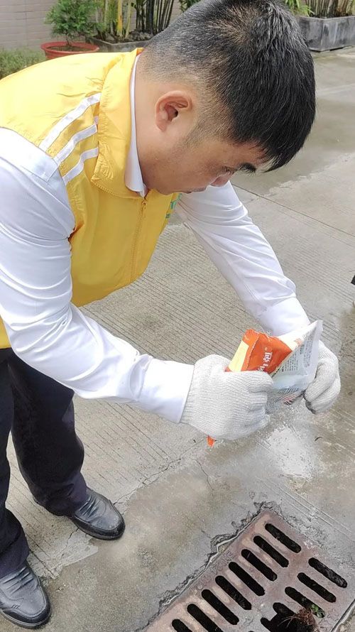 爱卫组志愿者化身“社区清道夫”,在高温下展开地毯式灭蚊工作,用汗水守护健康。他们翻盆倒罐,清理废弃容器等积水隐患;关注楼道角落等卫生死角,清洗盆栽积淤,从源头阻断蚊虫繁殖环境;对下水道、排水沟等易积水区域进行疏通,洒灭蚊药剂,确保不留下任何蚊虫孳生温床。完美青年志愿者用最细致朴实的暖心行动守护着社区的卫生安全线。