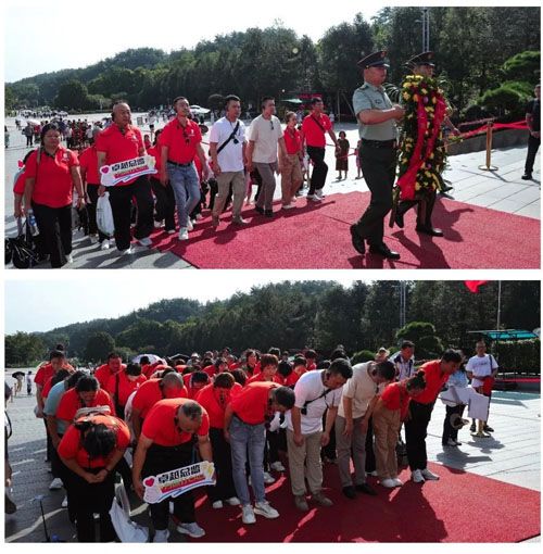 上午10点,伙伴们抵达伟人毛泽东的故乡韶山,这里是全国人民都向往的红色圣地。大家怀着无比敬仰之情来到毛泽东铜像广场,青松翠柏环绕间,伟人铜像巍然屹立。伴随着激昂的礼乐,武警礼兵踏着铿锵正步护送花篮,全体成员肃立鞠躬、绕行瞻仰,在这神圣的仪式中深切缅怀。