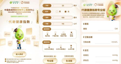 为进一步推动慢性病防治关口前移,顺应公众主动健康需求,安利纽崔莱营养与健康中心支持中疾控慢病中心与亚太肥胖与肌肉衰减代谢联盟,开发并推出“代谢健康指数”,借助数字化技术,对个人代谢水平进行动态量化科学评估,并匹配个性化干预方案,为使用者合理膳食及践行健康生活方式提供依据(代谢健康指数测评工具链接: https://radar.amway.com.cn/aka/sFA0zR)